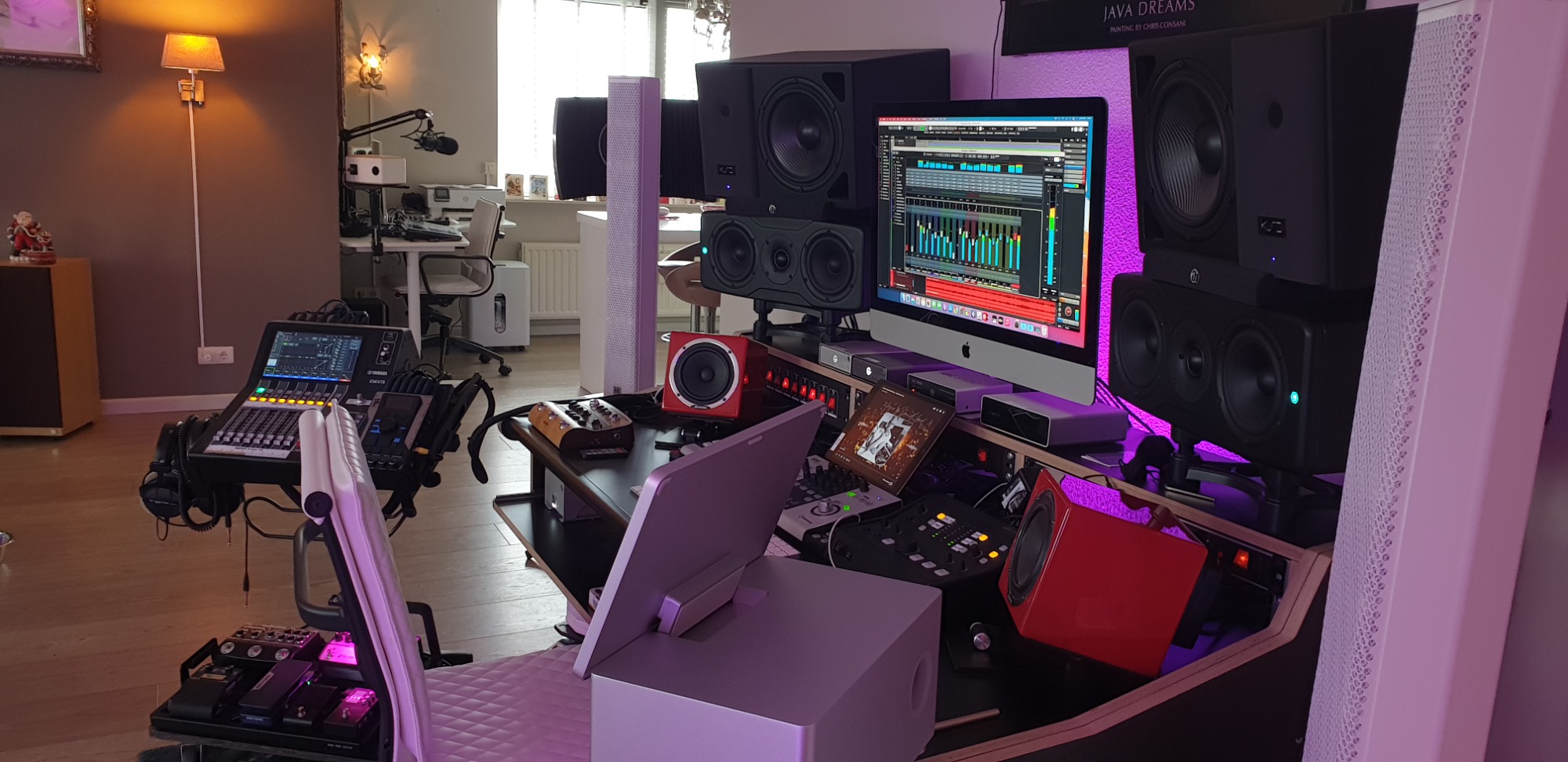 Er is een editingdesk voor de montage van video en audioregistraties met behulp van Final Cuit Pro en Cubase Pro. Een desk waar al het artwork in CANVA worden gemaakt.